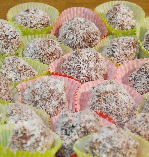 Nedves kézzel golyókat formázunk belőle, amiket kókuszreszelékbe forgatunk. Ekkor még nagyon lágynak tűnik az állaga, hiszen a kókuszzsír olvasztva került bele, de nem kell aggódni: hűtőbe tesszük, így megdermed, visszakeményedik a kókuszzsír, és körülbelül fél óra múlva már fogyasztható is a kókuszgolyó!