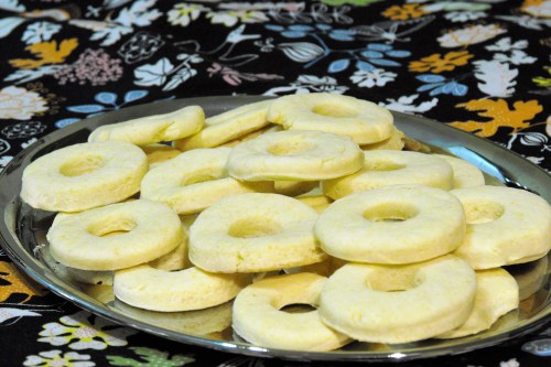 Gyerekkorom egyik kedvence volt a vaníliás karika – gondolom sokan vagyunk így ezzel 🙂 Évek óta nem ettem már, most viszont a férjem kérésére elkészítettem házilag. A gluténmentes liszt csomagolásán lévő receptből indultam ki – ez egy linzerekhez, almás pitéhez, zserbóhoz is használható omlós tészta alaprecept. Nagyon jól kezelhető-formázható tészta lett belőle, nem száradt ki sütés közben sem.