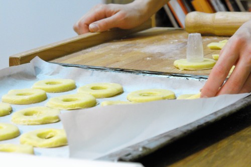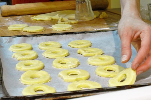 A kiszaggatott gyűrűket sütőpapírra tettem.