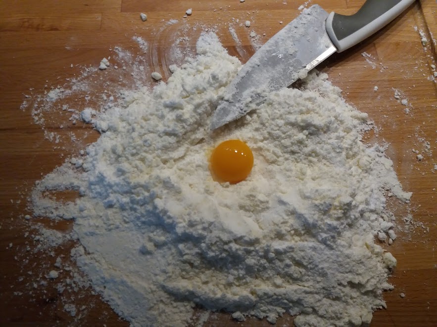 A xilitet kávédarálóval porrá őröltem, és ezt is hozzákevertem a lisztes vajhoz. Végül a kupac tetejére raktam a tojássárgáját, és gyors mozdulatokkal az egészet összegyúrtam. Elég száraznak tűnhet a tészta, de nem kell, hogy nagyon összeálljon, sőt nem is szabad kidolgozni, épp csak annyira, hogy cipót lehessen formázni belőle. Akkor jó, ha a vajdarabok látszódnak a tésztában, nincsenek szétolvadva.