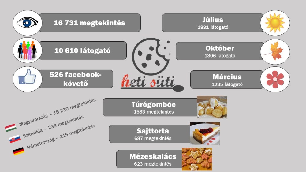 A legtöbb megtekintés júliusban volt, a legnépszerűbb recept pedig a túrógombóc, messze megelőzve a másik két dobogóst: a sajttortát és a mézeskalácsot.