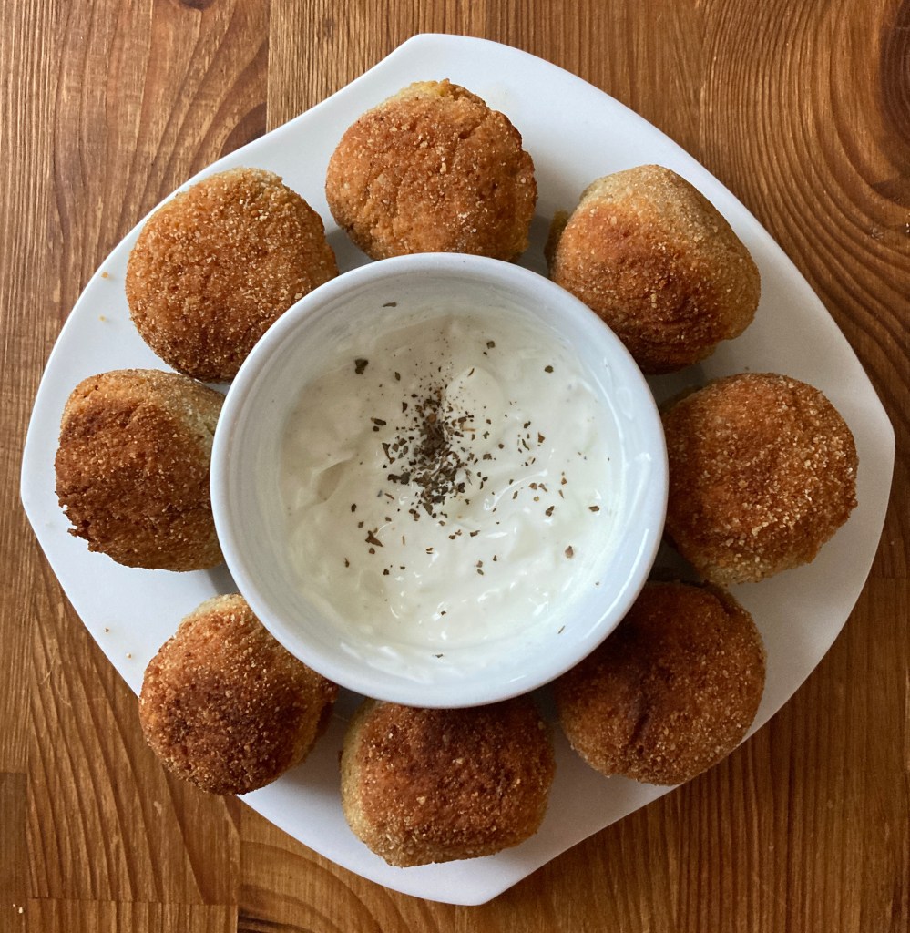 Az biztos, hogy 1 tojást kevertem a csicseriborsó-krémhez, majd tettem hozzá kb 2-3 nagy evőkanál lisztet, és annyi krumplipüréport, hogy formázható legyen. Lehet fűszerezni is még ilyenkor – só, bors, római kömény, fokhagyma, esetleg valami csípős…