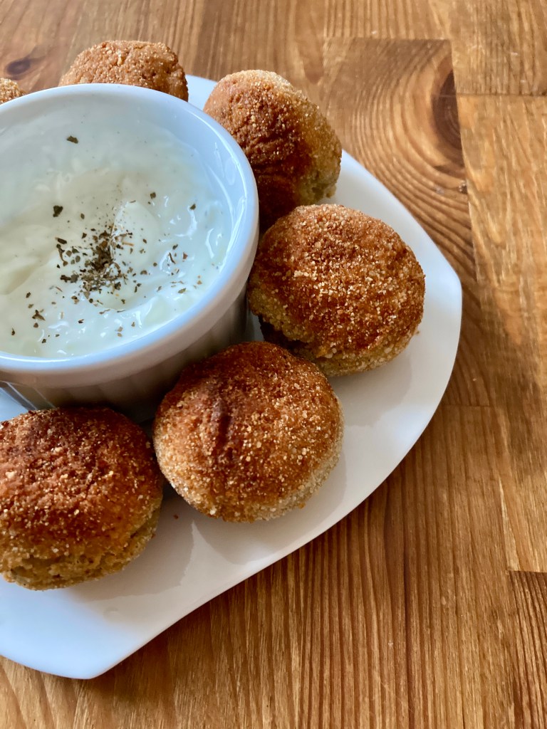 Valószínűleg jót tett volna neki, ha egy kicsit állni hagyom (legalábbis a falafel recepteknél, ami egy hasonló csicseriborsós, sült golyócska, ezt írják) – de ezt a lépést most kihagytam. Vizes kézzel kis golyókat formáztam a masszából, zsemlemorzsába forgattam, és forró olajban kisütöttem.