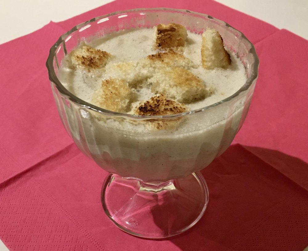 - pirított kenyérkocka vagy levesgyöngy