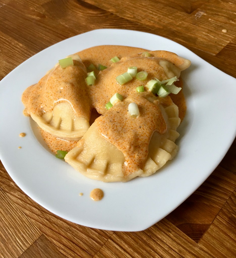 Nemrég kaptam ajándékba egy ravioli készítő formát. Eddig valahogy nem jutott még eszembe, hogy ilyet is lehetne házilag készíteni, pedig kiderült, hogy nagyon egyszerű! Főleg egy ilyen ügyes kis eszközzel, amivel ki is lehet szaggatni, megtölteni és összenyomni-megformázni a tésztát 😃