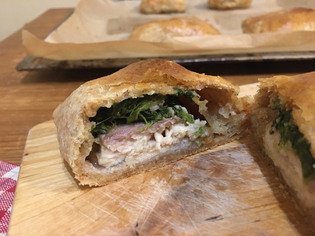 A tészta hasonlóan készül, mint a blundel, csak itt nem egy élesztős részbe kell belehajtogatni a vajasat: csak liszt, vaj, víz, ecet és só kell az alaphoz. Most, hogy ezt így leírtam egyébként leesett, hogy tojás nincs is benne, így aki tojásmentesen eszik, annak szuper alternatíva a blundel helyett 😃 Vaj helyett pedig valójában margarint használtam (legtöbbször ma már így készítik, könnyebben kezelhető vele a tészta – bár vajjal talán még finomabb) – szóval tejmentes is 🙂 ráadásul teljes kiőrlésű liszttel készült!