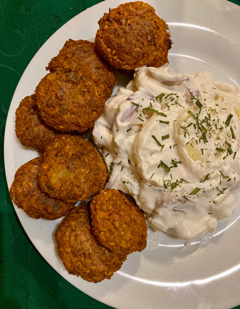 Vagy pontosabban fogalmazva: lencse-nemfasírt, nem-majonézes krumplisalátával 😃 De ez furán nézne ki a címsorban. Viszont a kettő külön-külön és együtt is nagyon finom lett! Gluténmentes és vegán vacsi.